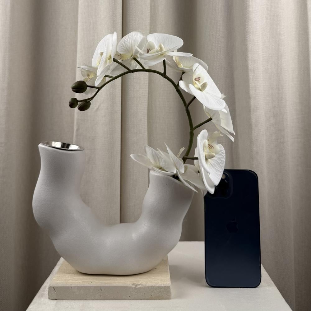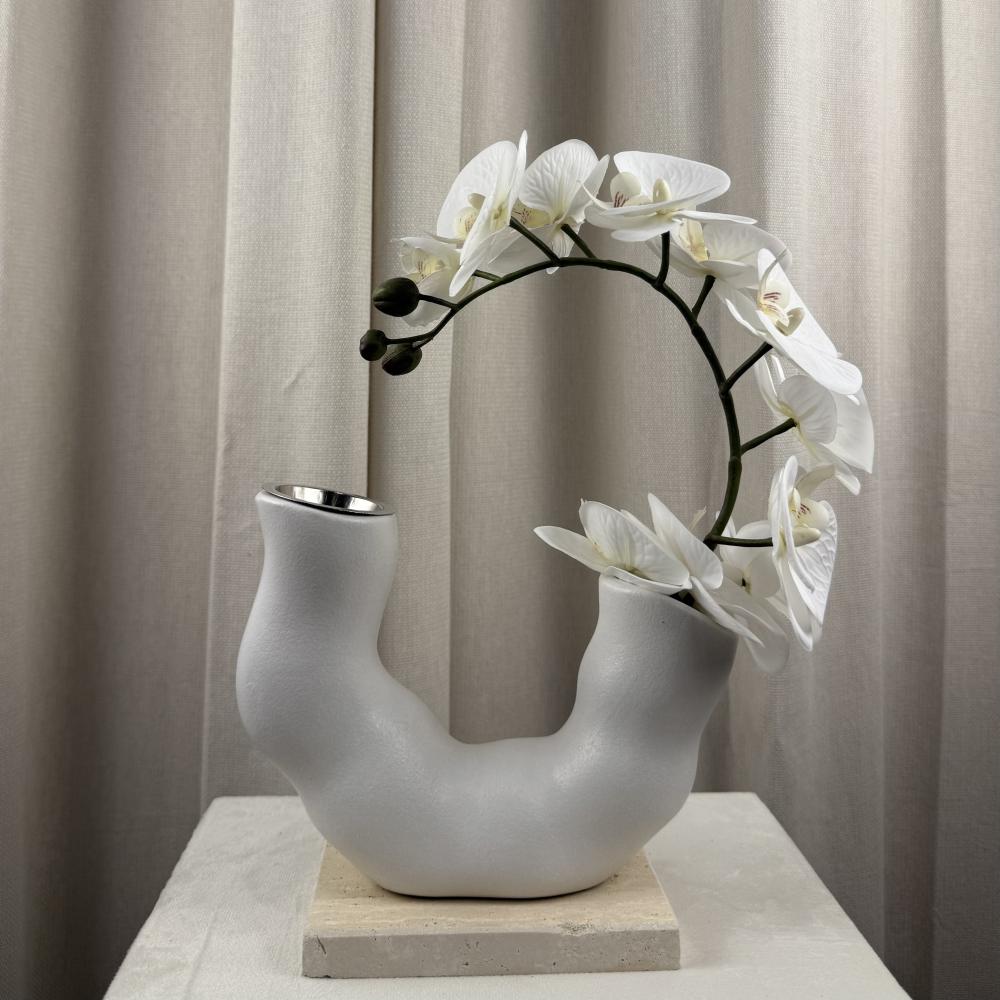 قاعدة من رخام الترفنتينو تحتوي على فازة اوركيد انيقة مع مبخر بتصميم ملفت